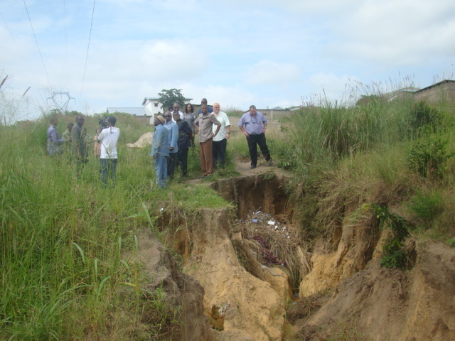 La délégation a bouclé sa visite de terrain par le ravin de Massengo, précisément au quartier Don Bosco où un impressionnant ravin de plus de 4 mètres de profondeur et 300 mètres de longueur s’est créé. Le pylône menacé par cette érosion est celui qui dessert actuellement le centre-ville de Brazzaville, appelé ligne 30KV. La destruction éventuelle de ces deux installations plongera longtemps une grande partie de la ville dans l’obscurité et portera énormément préjudice à la vie sociale des populations.