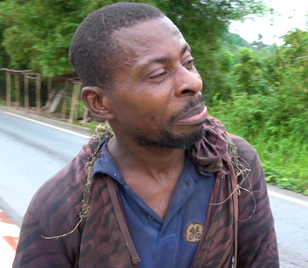 Un vieux sac de toile usée en guise de gibecière sur l’épaule, fusil et machette à la main, Gaston s’apprête à se rendre au carrefour. La fatigue a gagné son visage qu’un large sourire illumine malgré tout lorsqu’il raconte sa nuit : « Oui, la forêt est un champ de bataille où le gibier ne veut pas y laisser sa vie. C’est un combat. Mon arme principale est la patience. J’ai enfilé mes bottes pour chasser de 23 heures jusqu’à 7 heures ce matin, la nuit a été longue, j’ai souffert sous la pluie, je suis tombé dans la forêt, j’ai croisé un mamba vert. J’ai l’habitude que rien ne soit simple pour gagner ma vie». Gaston ne prétend pas connaître la forêt sur le bout de ses doigts, nul ne peut y prétendre tant la forêt du Mayombe est vaste. Vaste et majestueuse, riche de surprises et de secrets que semble vouloir imposer la nature. Seul la nuit dans cette immensité, Gaston n’a jamais pourtant tremblé : « Cela fait six années que je chasse, ouvrir l’œil et le bon, savoir apprivoiser le danger est une seconde nature. Le vrai danger pour moi est de revenir bredouille, la gibecière vide », dit-il en souriant.