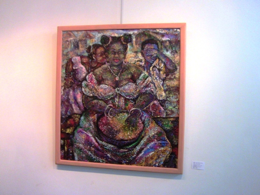 Les tableaux à l’acrylique, à l’huile et en papier mâché valent le coup d’œil. Songi songi, une illustration des conciliabules auxquels se plaisent d’ordinaire les enfants avec leur mère se présente comme une invitation cordiale à l’entrée. À l’instar de Pendeza Pelinda, Tabitha wa Thuku met aussi la génitrice en scène dans Twin parade in green (double parade en vert).Ici, on la voit prendre soin de son « nouveau-né tout en tressant sa fille plus âgée et lui montrant comment (se) coiffer ». Pendeza Pelinda revient encore sur ce thème dans La Solitude alors que Safina Kimbokota l’effleure dans Land ownership (appartenance à la terre).