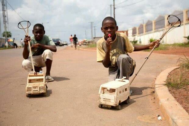 Ceux vivant au village ne sont plus en marge. Si à l’époque les enfants se contentaient des jouets purement traditionnels, fabriqués à partir des bambous, des boîtes de conserve et autres matériaux de récupération, ce n'est plus le cas. Pourtant, grâce à leur ingionisité, les enfrants s'offraient eux-même des voitures, des hélicoptères, des pétards, etc., fabriqués à partir des fils de fer, des chambres à air, vieux tissus, du plomb récupéré des batteries; des casquettes à base du papier ou des feuilles de manguier pour ne rappeler que ces quelques jouets.