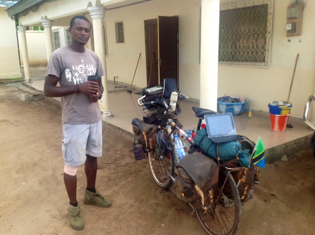 Sur son VTT modestement chargé, Elvis Lelo-Munis, un jeune touriste de 27 ans originaire de Tanzanie, est arrivé à Gamboma (Plateaux) le 20 avril en provenance de Souanké et Ouesso (Sangha). Dans la petite auberge qui le reçoit, le bonhomme a choisi de passer la nuit dehors en déployant sa petite tente à même le sol