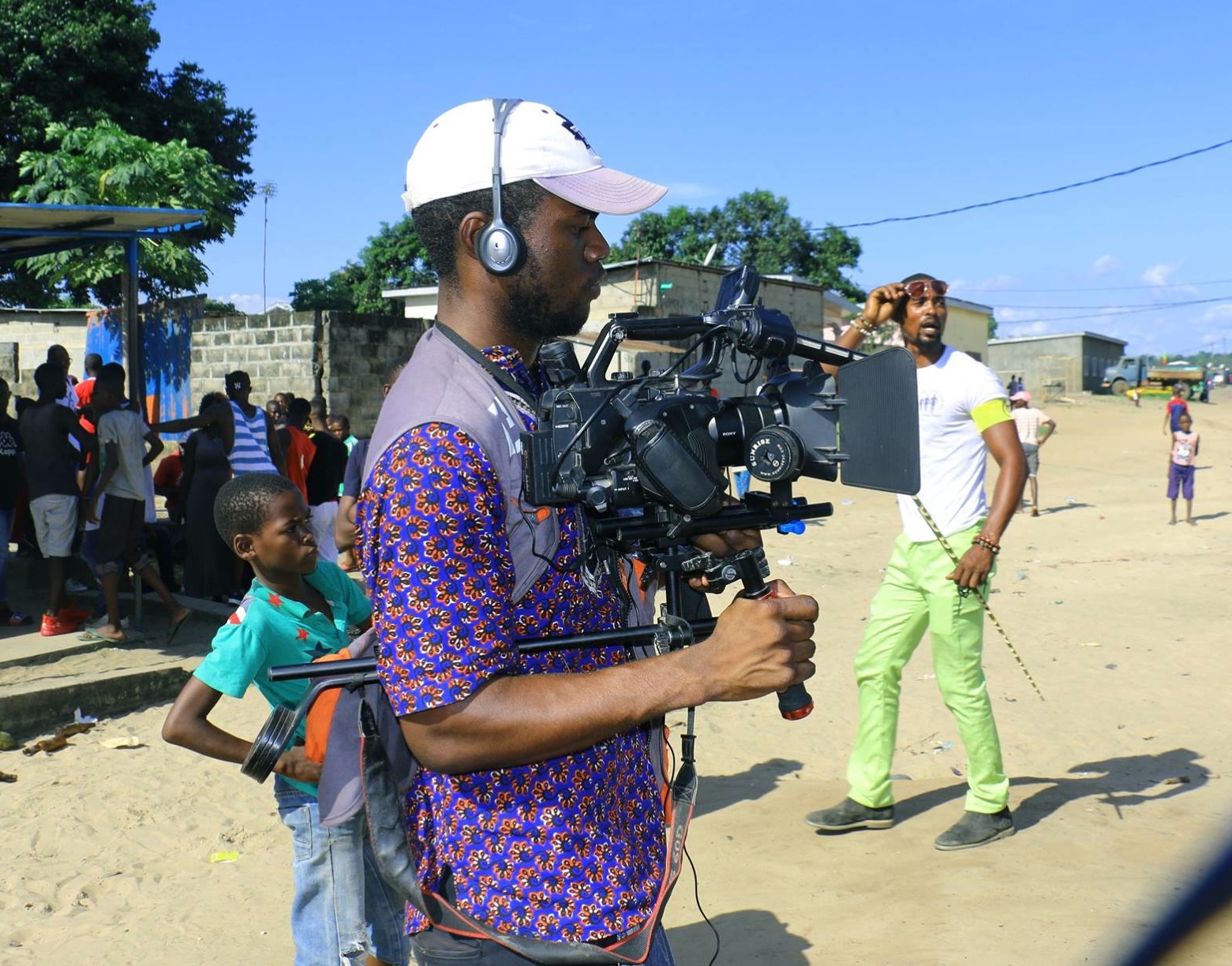 Ses études d’électrotechnique achevées avec brio lui laisseront le temps nécessaire à se consacrer pleinement à un destin qui lui semble tracé d’avance. L’année 2015 sera marquée par ses premières réalisations professionnelles, insuffisantes cependant pour en vivre confortablement, ce qui conduit le jeune Arnold à accepter un emploi d’interprète dans une société américaine de la place l’année suivante. La fin de ce contrat est comme un arrêt sur image jusqu’à ce qu’en 2018, la chaîne de télévision MCRTV le recrute en qualité de graphique designer et de réalisateur ! L’opportunité est belle, le film de sa vie s’accélère d’autant plus qu’il fera cette année là sa plus belle rencontre professionnelle avec… son oncle ! Un oncle partit en France, vingt ans plus tôt, devenu réalisateur à France 2 Télévisions, et qu’il revoit pour la première fois depuis son départ du Congo. « Lors des vacances de mon oncle, qu’il passait à Pointe Noire, j’ai reçu de sa part de très nombreux conseils, il m’a largement fait profiter de sa riche expérience. J’ai énormément appris à ses côtés tandis que je débutais à MCRTV », confie Arnold qui n’a depuis cessé de progresser derrière ses machines. « J’aime tourner avec du matériel dont les caractéristiques offrent une grande latitude de traitement en post-production, des caméras comme la Sony Alpha ou FS5 avec le S-Log et les filtres ND intégrés. C’est plus cool pour mes tournages. Pour la lumière, j’avoue avoir du mal à me passer des réflecteurs. J’espère d’ailleurs un jour pouvoir investir dans mon propre matériel pour être totalement autonome », continue-t-il.