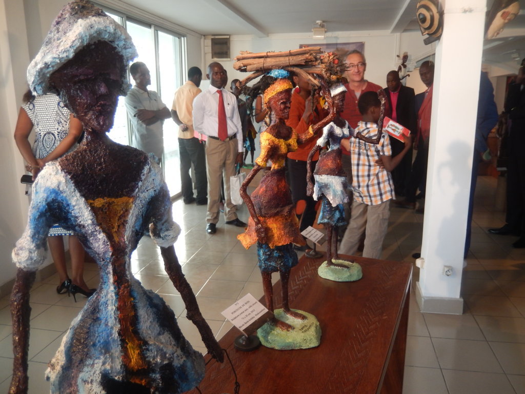 Une dizaine de sculptures réalisées avec une structure métallique, de sciure et de colle et du bois, spécialement pour cette exposition, reflète les différents métiers traditionnels comme la chasse, la pêche à la pirogue.