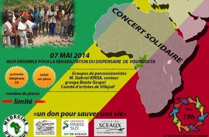 Sceaux. Concert solidaire : Un véritable concert de percussions est organisé pour récolter des dons afin de réhabiliter le dispensaire de Voungouta au Congo. Les fond récoltés serviront à couvrir la réfection des bâtiments, la dotation en matériels et médicaments, le salaire d’un infirmier et d’une sage-femme pour un an, la mise en place du comité de santé. Pour les travaux de réhabilitation, une coopérative d’artisans congolais a été sollicitée, GBA Construction, car elle a déjà travaillé à l’aménagement de la source du village et embauché plusieurs jeunes maçons du village. Cet événement musical est organisé par Médecins d’Afrique et la Ville de Sceaux. Le concert se tiendra le 7 mai dès 19h à l’ancienne mairie de Sceaux, 68 rue Hudon. Tarif 5euros. Toutes les informations au 0675510228.