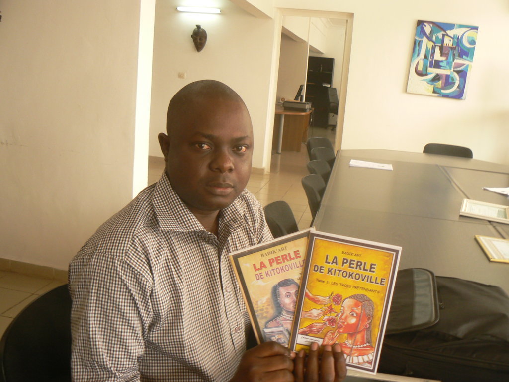 Badik’art, de son vrai nom Valéry Badika Nzila, est le triple lauréat du prix Afrique et méditerranée en 2010, du grand prix Senghor organisé par l’OIF en 2006, et d’autres distinctions tout autant valorisantes. Dans les librairies nationales, on peut trouver ses trois tomes de La Perle de Kitokoville. Son vœu le plus cher ? « Relier les trois tomes de mes publications et les publier, bien que je n’ai pas d’éditeur. » Car pour l’heure, cette trilogie n’a été publiée qu’à compte d’auteur et n’est donc disponible que dans les librairies qui se montrent sensibles à l’art du dessin fait maison.