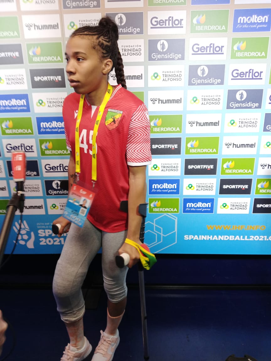 Blessée le 4 décembre lors du match Congo-Danemark à la Coupe du monde séniors dames qui se déroule en Espagne, l’ailière gauche des Diables rouges risque de passer des mois sans exercer son métier de handballeuse.