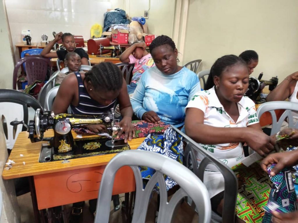 Le centre d’encadrement « Espoir » de la Fédération mondiale contre la drogue (WFAD)- RDC, mis en place pour l’autonomisation des bénéficiaires du projet « Jeunesse sobre » financé par la Coopération suédoise, est en train de former des jeunes filles, ex-membres des écuries et autres gangs urbains appelés communément à Kinshasa « kuluna », en coupe et couture.