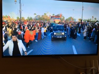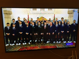 Installés à découvert à bord d’un bus à impériale depuis l’aéroport international Rabat-Salé où un vol spécial de Royal Air Maroc venait de les débarquer en fin d’après-midi, les Lions de l’Atlas, costumes bleus et basquets blancs, ont eu droit à un bain de foule de près de trois heures sur l’itinéraire qui les a conduits au Palais royal pour une réception chez Mohamed VI. Cris, chants, danses, tam-tams émanant de foules en liesse ont rythmé cette marche triomphale retransmise en direct à la télévision.
