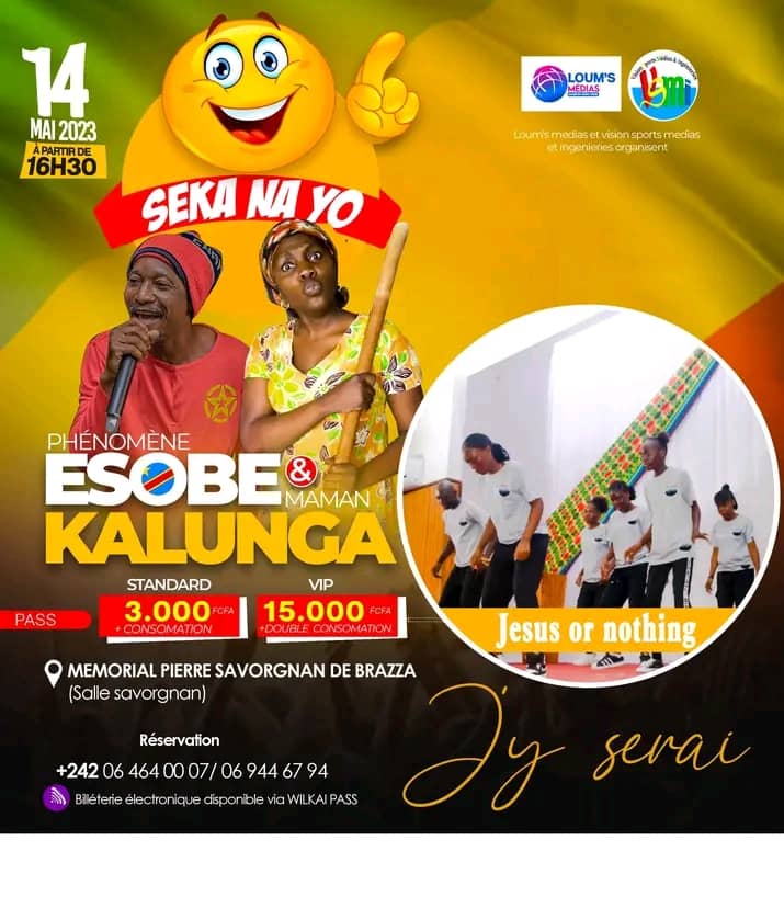 On ne présente plus les deux stars congolaises de l’humour, bien connues du public avec leurs célèbres personnages. Les amoureux de la comédie congolaise se souviendront de ce duo qui fait rire. Esobe Phénomène et Mama Kalunga, accompagnés de plusieurs humoristes congolais, vont livrer un spectacle le 14 mai, au mémorial Pierre-Savorgnan-de-Brazza.
