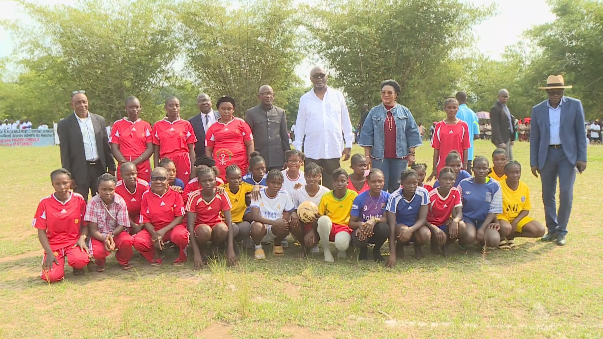 Lors de ce moment de lancement de la campagne, Hugues Ngouélondélé, accompagné de la présidente de la fondation Rosalie-Matondo pour le bien-être de tous, a offert des kits sportifs composé de ballons, de maillots et autres aux différentes équipes des filles et garçons de Louomo.