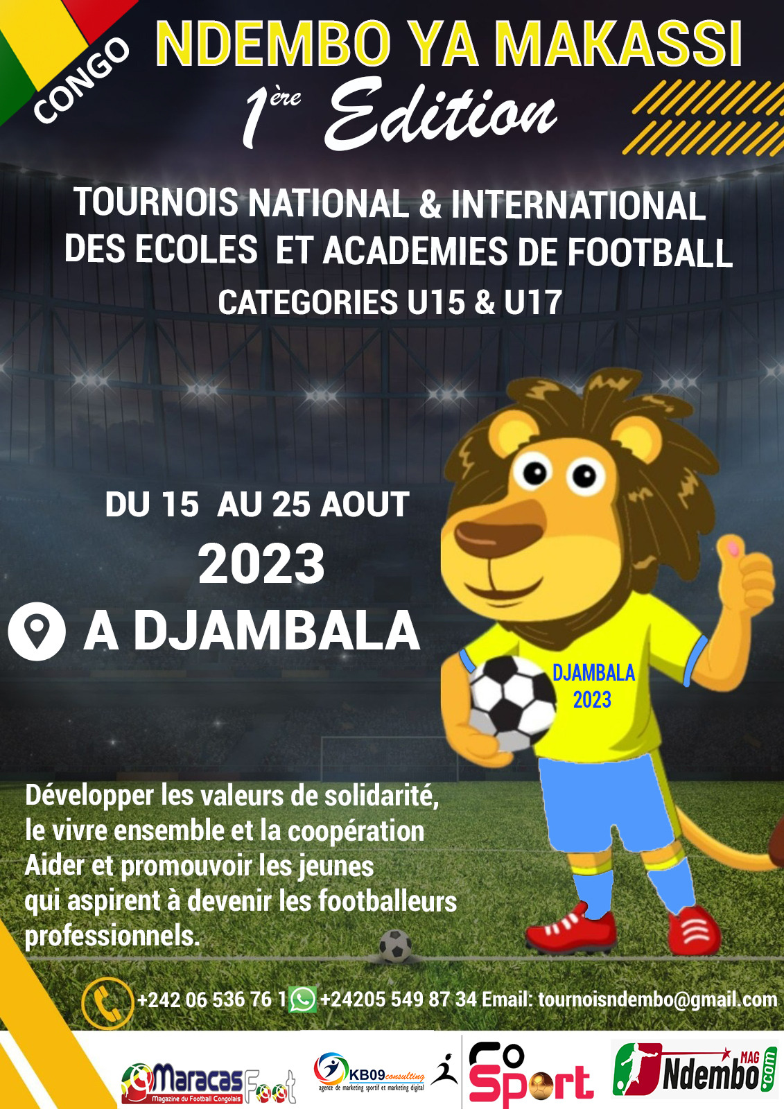 La localité de Djambala, chef-lieu du département des Plateaux, accueillera, du 15 au 25 août, la première édition du tournoi international des écoles et académies de football dénommé « Ndembo ya makassi ».