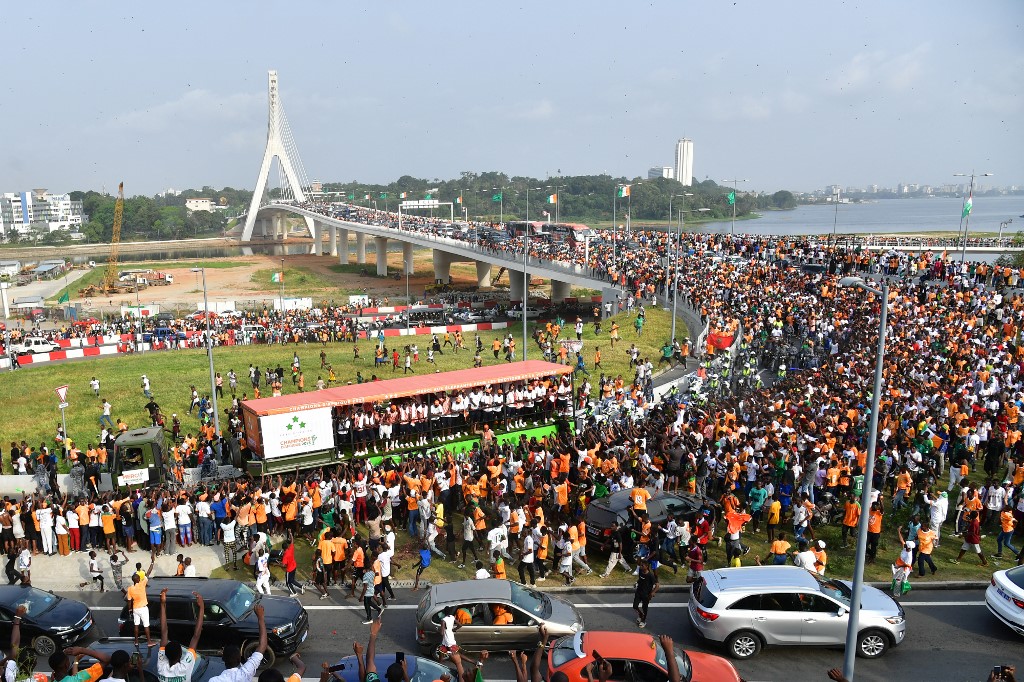 Au lendemain de leur triomphe 2-1 face au Nigeria, ils ont salué les dizaines de milliers de supporters massés sur les ponts et avenues des diverses communes d'Abidjan, certains de leurs supporters n'hésitant pas à accompagner leur cortège en courant, loin d'être découragés par l'accablante chaleur qui frappait la ville.