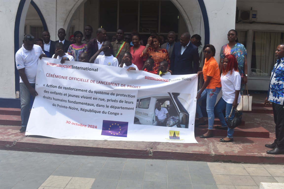 Le lancement officiel du projet Action de renforcement du système de protection des enfants et jeunes vivant dans rue privés de leurs droits humains fondamentaux, dans le département de Pointe-Noire, a eu lieu le 30 octobre en présence d’Evelyne Tchitchelle et d’Arle Ntonda, respectivement maire de la ville et directeur du Samusocial local.