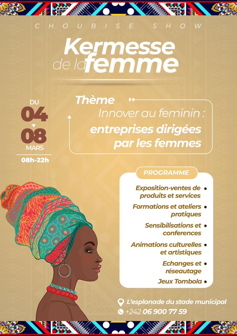 Le label Choubise Show organisera, du 4 au 8 mars à l'esplanade du Complexe sportif de Pointe-Noire, une kermesse visant à mettre en valeur les femmes entrepreneuses et celles qui s’illustrent dans leurs domaines respectifs.