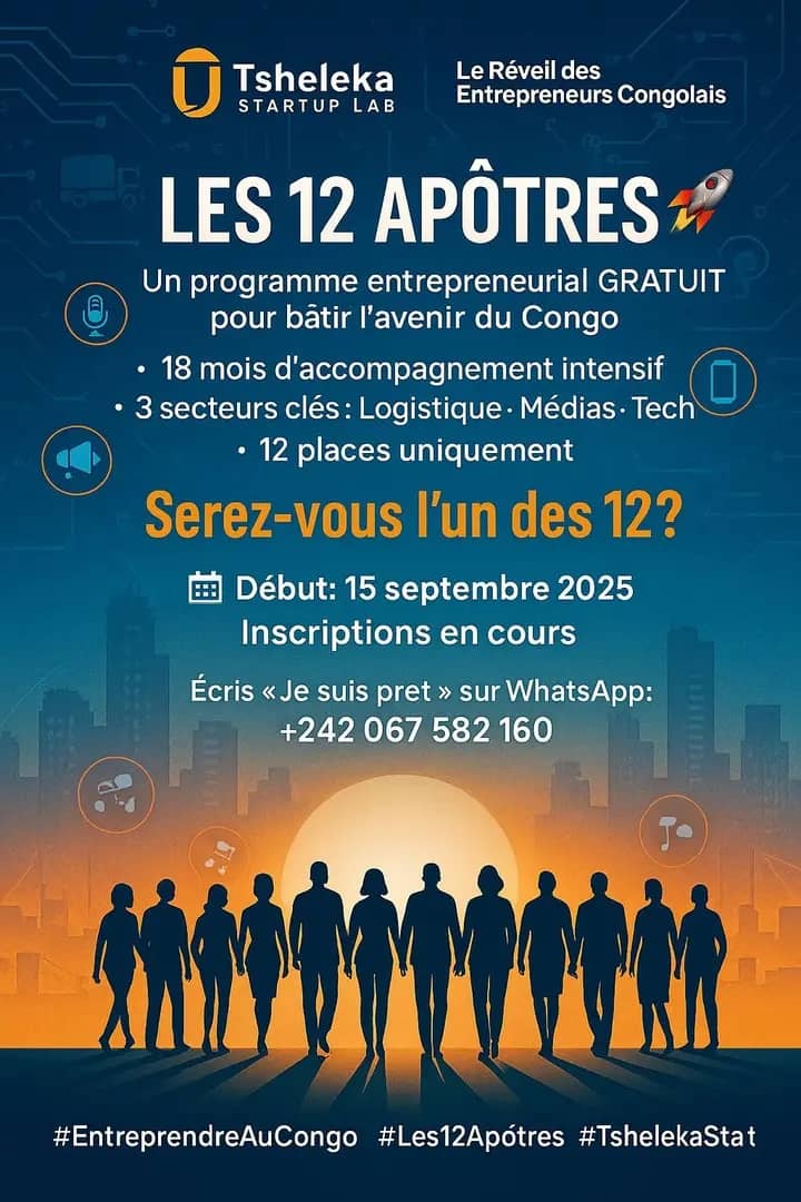 A travers ce programme « Les 12 apôtres », la startup Tsheleka accompagnera les jeunes congolais dans la concrétisation de leurs idées en leur fournissant des outils, des formations et un réseau de soutien. Elle se fonde sur l’idée que chaque jeune a du potentiel et qu’il suffit d’un bon accompagnement pour transformer une idée en succès. « Tes idées ont plus de valeur que ton capital. Entrepreneurs africains, cette vérité change tout, trop souvent, nous pensons qu'il faut d’abord avoir de l'argent pour entreprendre alors que la réalité est tout autre chose. Nos idées sont notre véritable richesse, une solution innovante vaut plus que des millions mal investis… Chaque grande entreprise africaine a commencé par une idée griffonnée sur un papier. Ne laissez pas le manque de capital freiner vos ambitions et commencer avec ce que vous avez. L’Afrique a besoin de vos solutions, pas vos excuses », ont indiqué les organisateurs sur la page officielle de l'événement.