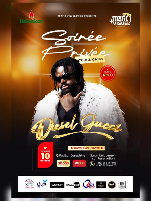 Organisée par Trafic Visuel Prod, avec le soutien de Heineken, la Soirée privée Chic & Class promet une nuit de prestige, de musique et de style, le 10 octobre prochain au Pavillon Joséphine à Brazzaville.