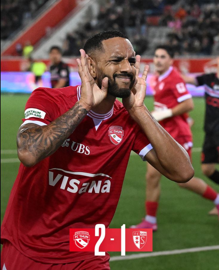 Christopher Ibayi porte Thoune vers la victoire face à Sion (2-1). Après une tête piquée sur la base du poteau valaisan, l’international congolais égalise à la 39e en reprenant du droit un centre au second poteau.