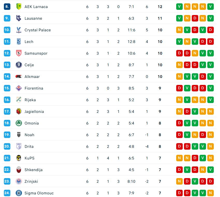Ligue Europa Conférence, 6e et dernière journée