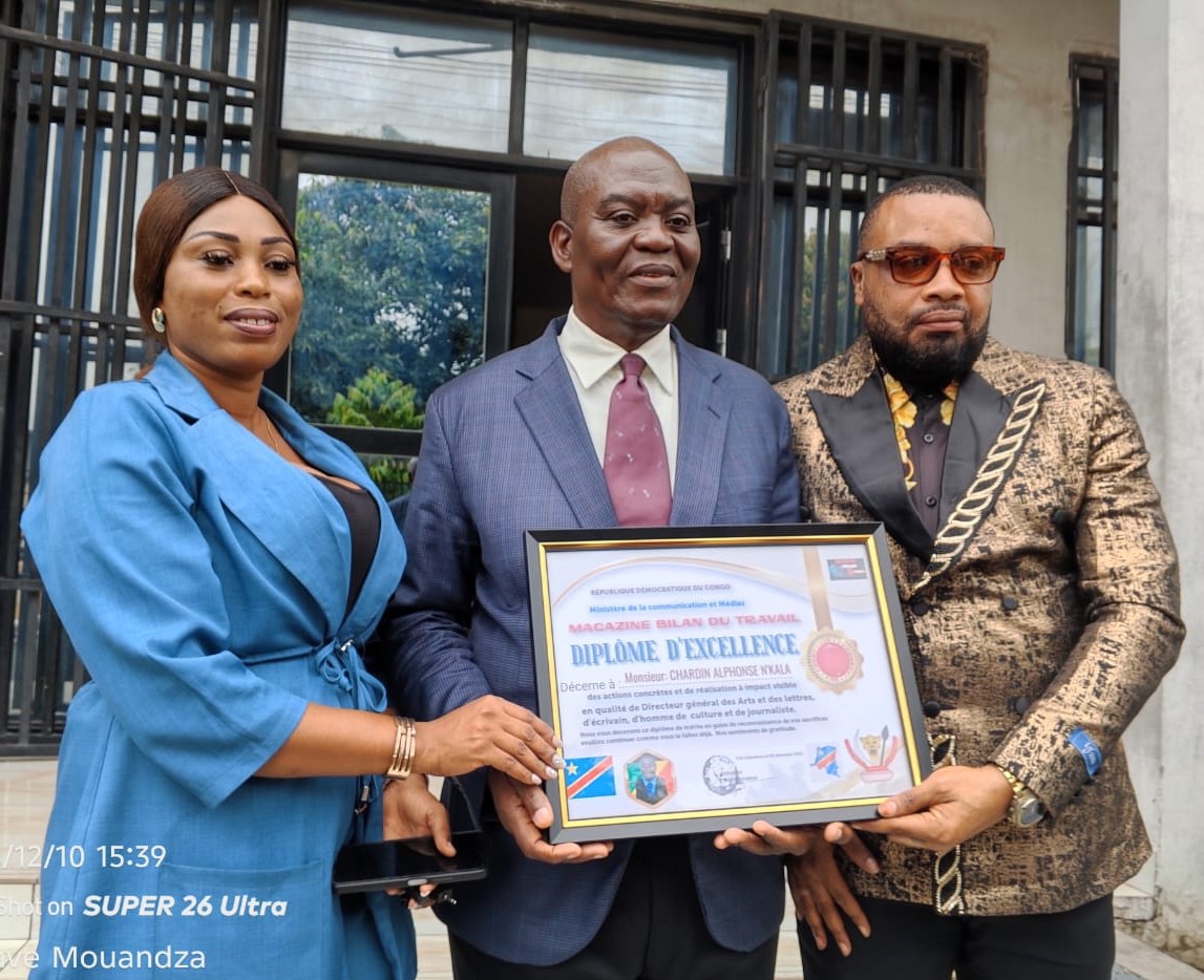 Le prix du mérite, édition 2025-2026 a été décerné au directeur général des Arts et des lettres, au ministère de l’Industrie culturelle, artistique, touristique et des loisirs, Chardin Alphonse N’Kala, par le Magazine Bilan du travail de la République démocratique du Congo (RDC). La remise du prix a eu lieu la semaine dernière à son cabinet de travail.