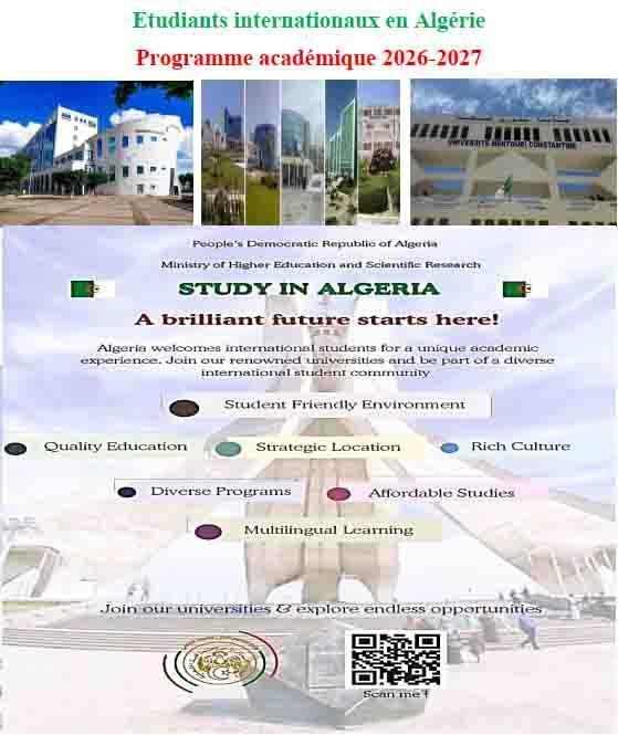 Le ministère de l’Enseignement et de la Recherche scientifique de la République algérienne vient de lancer la deuxième édition de la plateforme numérique dénommée « Study in Algeria 2026-2027 », destinée aux étudiants internationaux désireux de poursuivre leurs études universitaires en Algérie, avec leurs propres moyens financiers, dans différents cycles de formation (Licence, master et doctorat).