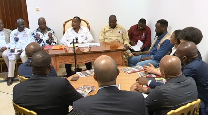 La délégation conduite par Michel Djombo, président d'Unicongo, a suivi la présentation du projet de société du président sortant " Accelerons la marche vers le développement " et partagé avec lui la vision de rédynamiser l'économie du pays.
