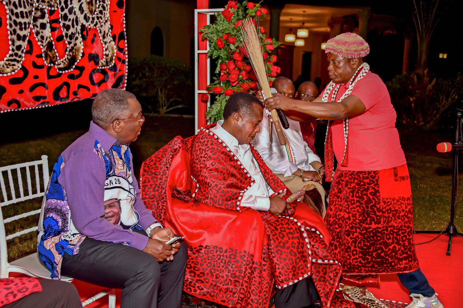 Après le meeting de Djambala le 4 mars, le candidat Denis Sassou N’Guesso a été reçu en soirée par les notables et sages tékés du département des Plateaux. « Vous êtes chez vous, chef. Nous vous remettons les attributs de la chefferie et du pouvoir légués par nos ancêtres afin que vous ayez la force de combattre vos adversaires pour le salut et le bien-être des Congolais », ont-ils déclaré en faisant le pari de voter pour lui le 15 mars.