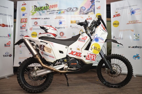La moto de Frank Verhoestraete pour le Rallye Dakar 2015 a été présentée aux sponsors, le samedi 11 octobre à Kinshasa, au cours d’une soirée organisée au Kwilu Bar à Gombe à Kinshasa.