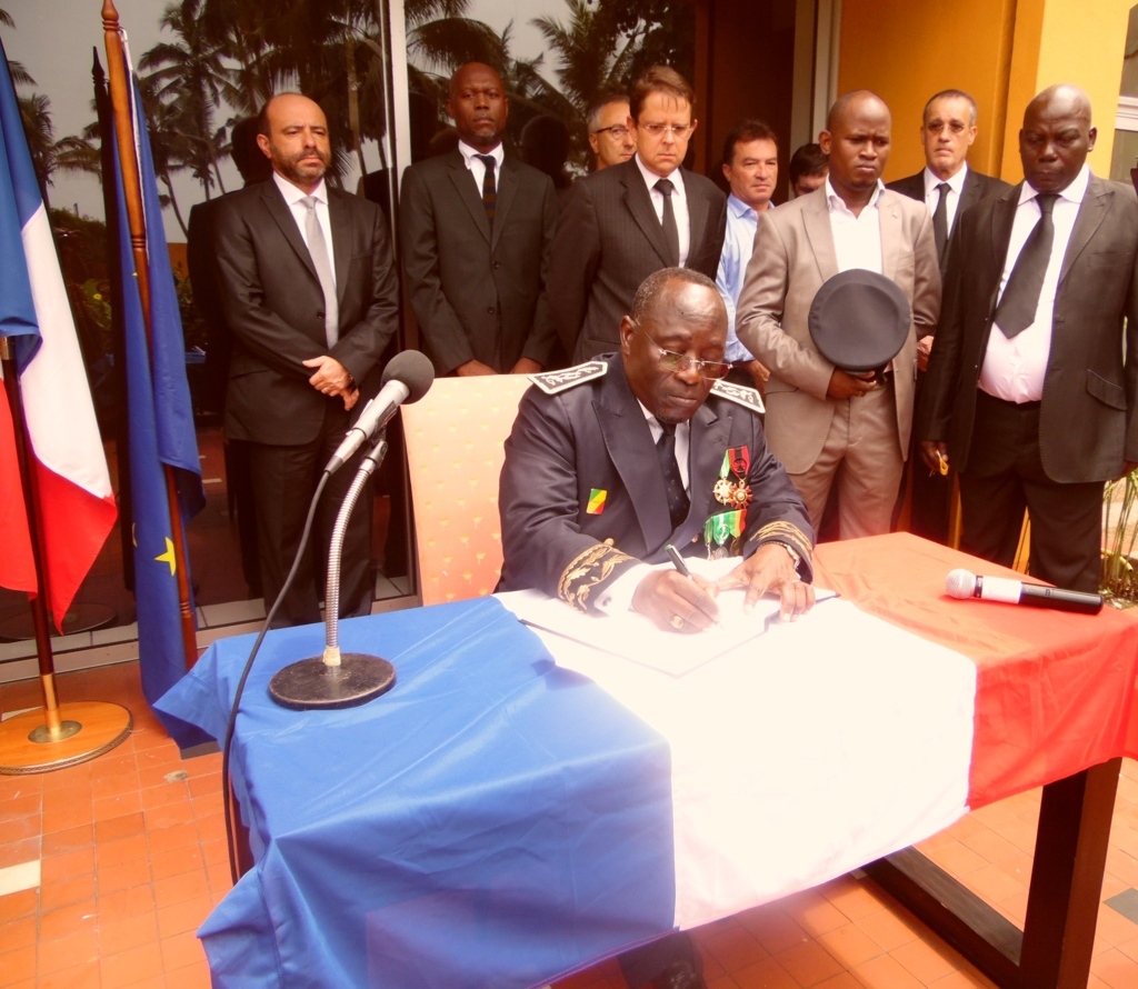 Jean-Luc Delvert, entouré de ses compatriotes français, représentant les Français de Pointe-Noire (élus et responsables associatifs, dirigeants d’entreprise), s’est dit touché par cette action : «Je voudrais vous dire, au nom de mes compatriotes, combien nous sommes sensibles à votre geste aujourd’hui et combien nous sommes honorés que vous ouvriez ce registre de condoléances», a-t-il dit avant d’ajouter «Depuis trois jours, je reçois de toute part, venus du Congo, des témoignages de sympathie et de solidarité. Sachez que nous sommes particulièrement touchés et que nous mesurons, dans l’épreuve, ce qui rapproche nos pays»