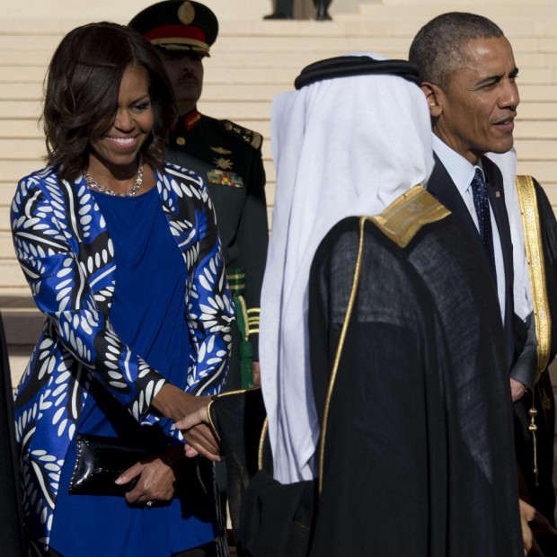 Ces images font le buzz et ne cessent d’enflammer la toile. Mardi Michelle Obama accompagnait son mari, le président américain Barack Obama en Arabie Saoudite où le couple a rencontré le nouveau roi Salmane et lui a présenté ses condoléances.