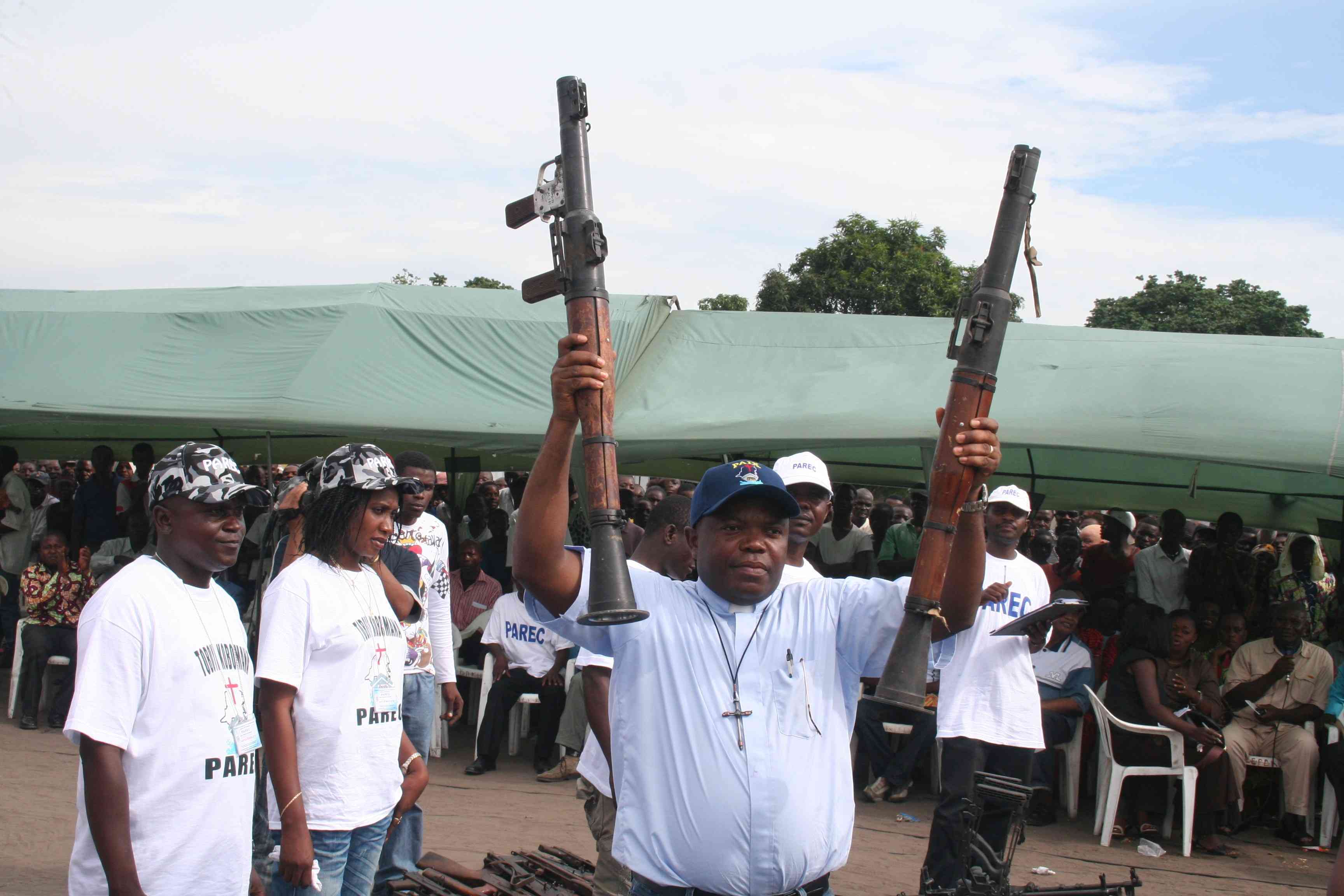 Parmi les armes récupérées, certaines étaient encore en état de servir et d’autres défectueuses. Elles ont officiellement été remises au gouvernement lors d’une cérémonie solennelle organisée sur le boulevard Triomphal, en face du stade des Martyrs.