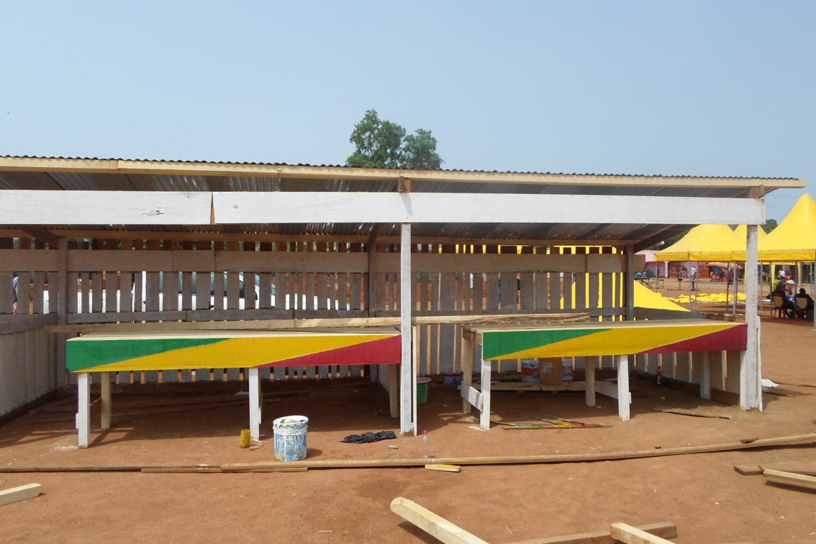 Nous avons construit des stands en planche à la Place rouge pour faire savoir à touets et à tous que notre département est riche en bois. Autrement tout est fin prêt pour rendre la fête belle.