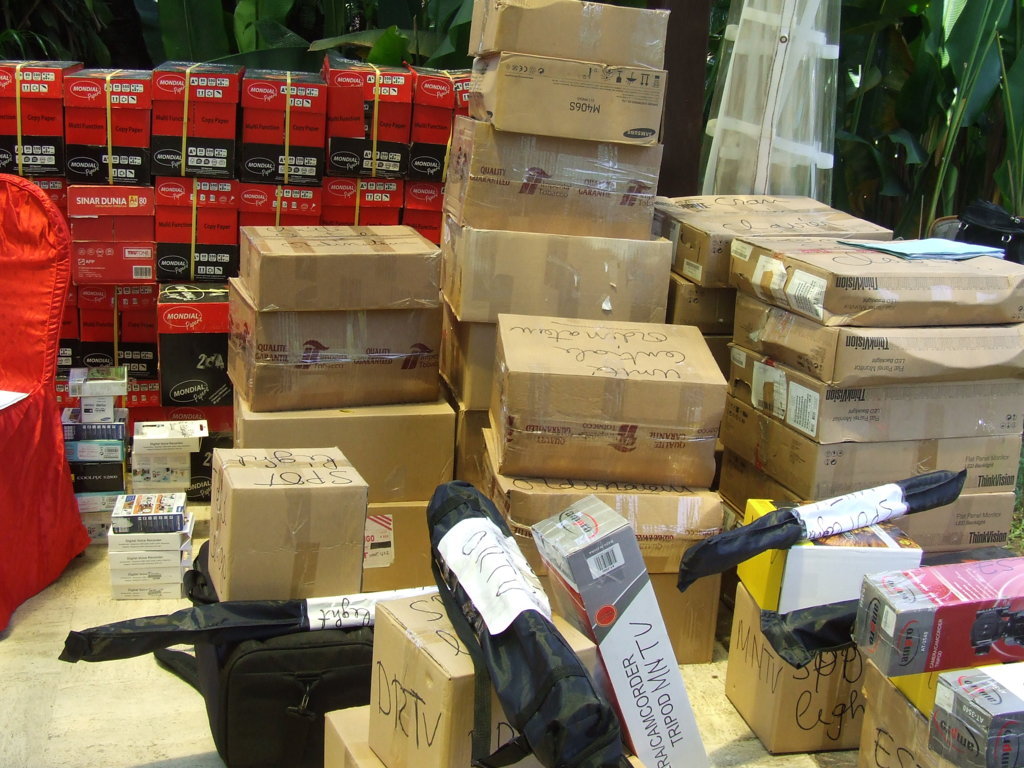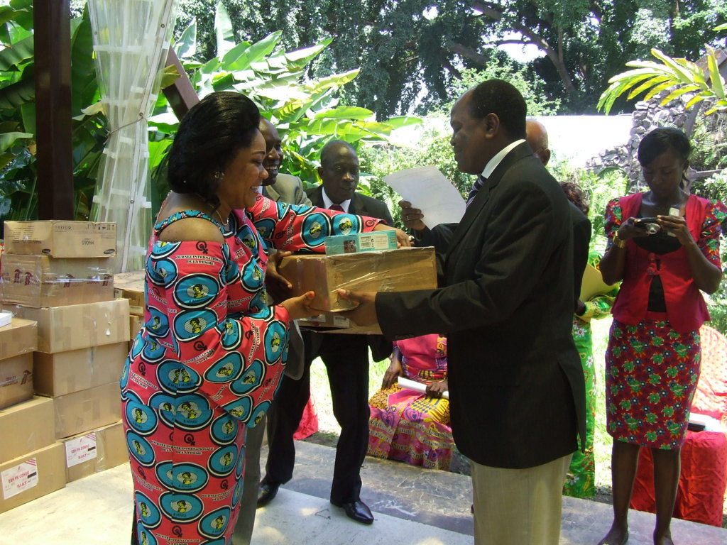 Le don est remis, le 25 mars, à titre personnel par Bienvenue Gertrude Hobain-Mongo, secrétaire comptable du Conseil supérieur de la liberté de communication (CSLC). Il est composé de caméras, de spots light, d'appareils photos numériques, de dictaphones, d'ordinateurs de bureau avec imprimantes, de motocycles « Djakarta » et de rames de papiers.