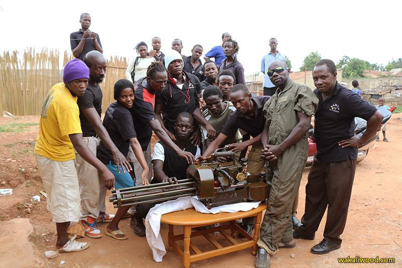 Une intense fusillade éclate, mais tout ceci n'est qu'une scène en tournage d'« Opération Kakongoliro », un film d'action tourné avec des moyens dérisoires dans une casse de Wakaliga, un bidonville de Kampala. Devenu un studio à ciel ouvert pour des productions ougandaises artisanales, l'endroit est désormais surnommé « Wakaliwood » par ceux qui y tournent.
