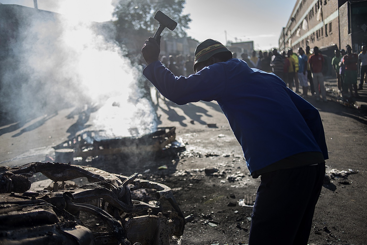 Dans la nuit, des magasins tenus par des étrangers avaient été pris d'assaut par des pillards, qui ont également crié aux propriétaires de quitter le pays. Douze personnes ont été arrêtées, des voitures ont été incendiées, mais aucun blessé n'a été signalé.