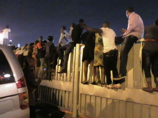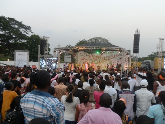 Ils étaient venus de tous les coins de la ville de Kinshasa et de tous les âges, tous pas forcément chrétiens, à avoir pris d’assaut le GH et ses abords. À partir de 14 heures déjà, les plus avisés avaient investis les lieux alors que le concert était annoncé pour 16 heures, et ça n’arrêtait pas d’affluer jusqu’aux alentours de 18 heures. Alors qu’il fallait batailler, jouer des coudes pour s’acheter son billet au guichet, l’on n’était pourtant pas au bout de ses peines une fois le ticket obtenu. Il fallait encore faire des pieds et des mains pour entrer dans l’enclos du parking. Ainsi vu l’impossibilité d’accès au parking, plusieurs s’étaient juste résolus à suivre le concert debout dans la rue se contentant des sons qui filtraient jusqu’au dehors de l’enclos. Faute de places, certains avaient choisi l’inconfort des murs de la clôture et même de s’agripper au portail d’entrée du parking quitte à voir coûte que coûte les musiciens sur la scène.