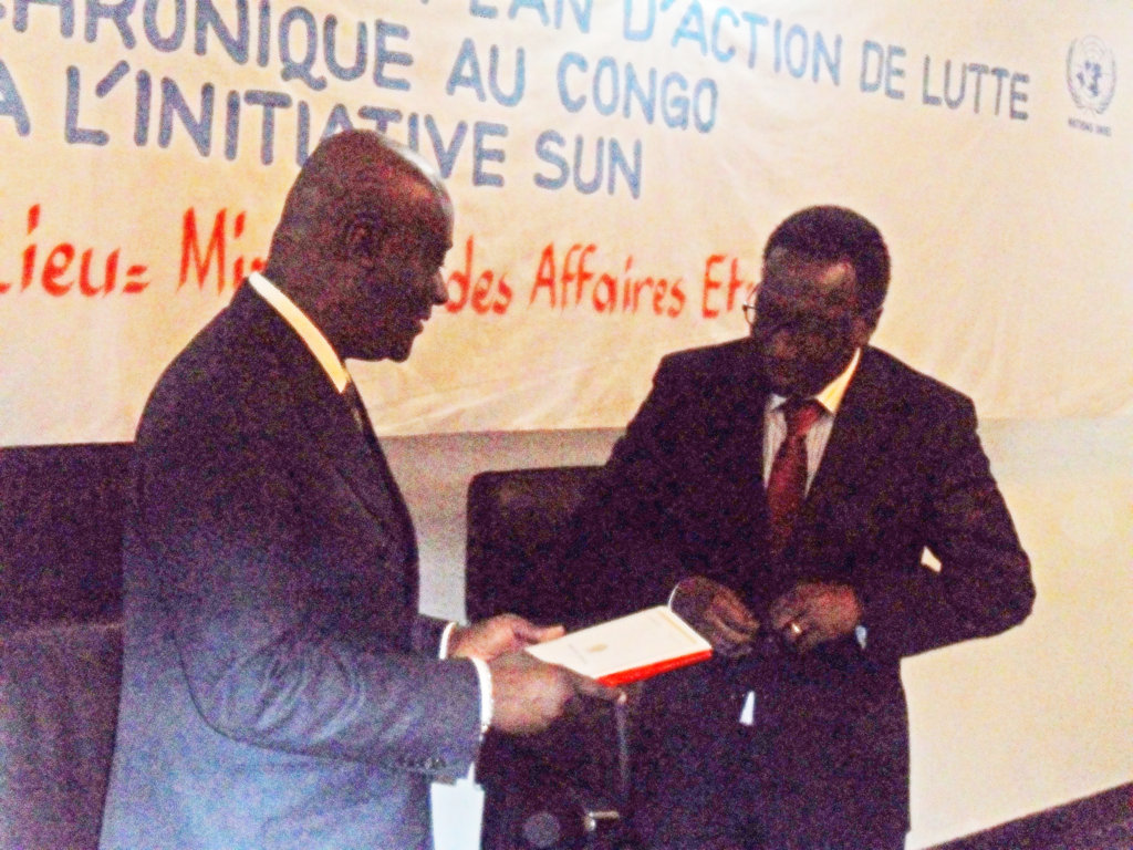 Jean-Baptiste Ondaye a remis officiellement, à cette même occasion, la lettre d’adhésion du Congo à l’initiative SUN au représentant de l’Unicef au Congo, Aloys Kamuragiye, qui s’est focalisé sur les conséquences négatives de la malnutrition tant sur le plan physique qu’intellectuel conduisant à une baisse de la croissance économique et à la perpétuation de la pauvreté. Environ 16 000 enfants meurent à cause de la malnutrition au Congo et le programme va renforcer la lutte contre ce mal chronique. Selon les études scientifiques, la bonne nutrition est un déterminant de la qualité des ressources humaines dont le Congo disposera en 2025.