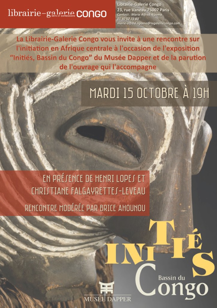 En marge de l’exposition « Initiés, Bassin du Congo » au Musée Dapper et à l’occasion de la parution de l’ouvrage éponyme, la Librairie-Galerie Congo organise une rencontre le mardi 15 octobre à 19h avec la participation de Christiane Falgayrettes-Leveau, directeur du Musée Dapper et co-commissaire de l'exposition, et de Henri Lopes, écrivain et ambassadeur du Congo en France.
