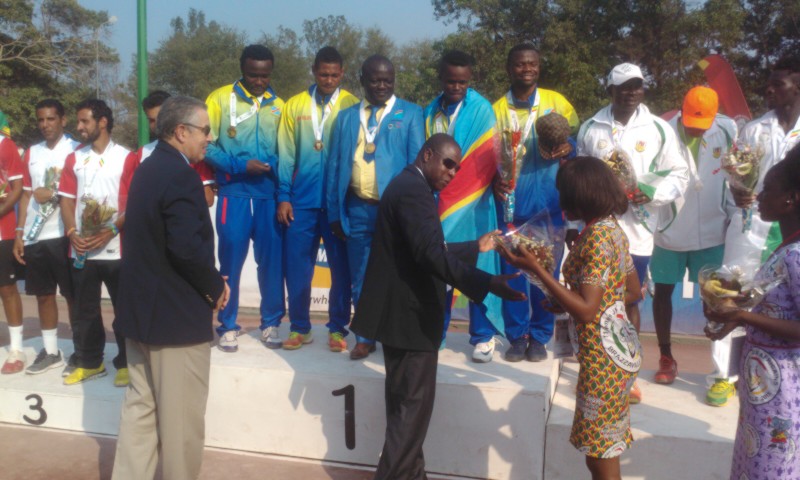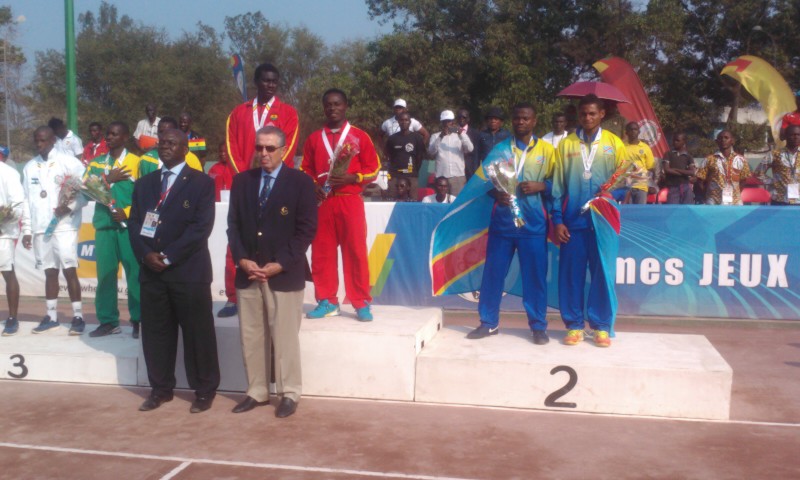 Déjà Médaillé d’or en simple messieurs des Jeux et médaillé d’argent en double messieurs avec Sarma Nkulufa, Denis Indondo, alias Aboma, (qui signifie tueur) avec à ses côtés le jeune Christian Saidi, a arraché, le 18 septembre au Tennis Club de Brazzaville une deuxième médaille d’or en battant en finale l’équipe du Nigeria par deux sets à zéro (6-2, 6-3). C’était en présence du staff dirigeant de la Fédération africaine de tennis, à sa tête le président Tarek Sherif.