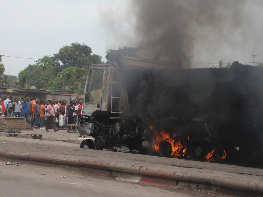À l’origine de ces incidents, la mort d’une femme de troisième âge fauchée par un véhicule de la société Andrade Gutierrez. La scène se passe sur l’avenue de l’OUA, devant le super marché Asia, au marché Total. La population qui n'a pas supporté la mort de cette femme s'est mobilisée. Faute de mettre la main sur les chauffeurs qui ont trouvé refuge au commissariat de police le plus proche, ils sont passés à l'action en mettant le feu sur les quatre véhicules du convoi.