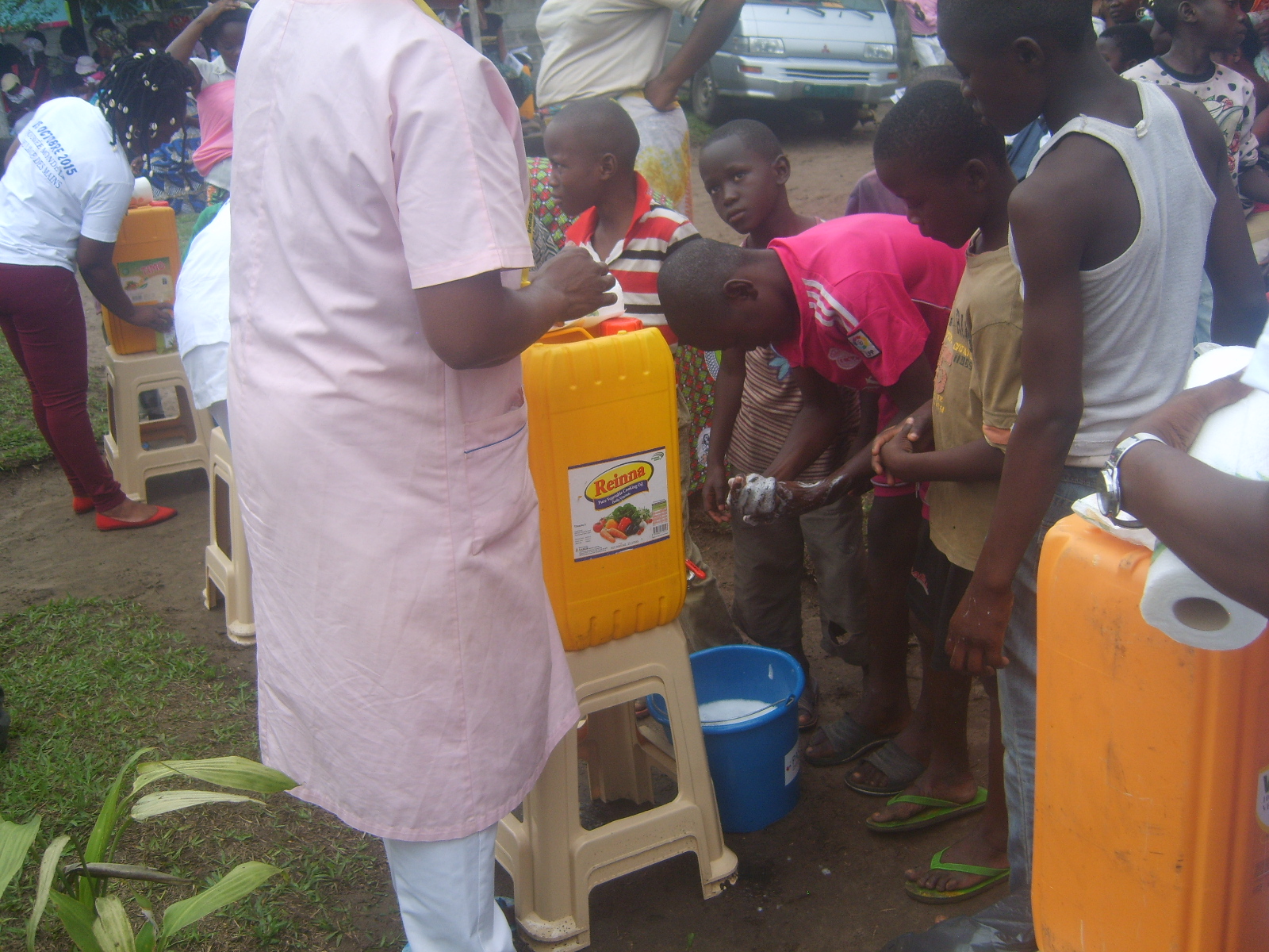 Une démonstration des sept gestes de lavage des mains au savon avec l’eau a été faite avant que l’assistance (femmes et enfants notamment) ne se succède pour appliquer la leçon apprise.