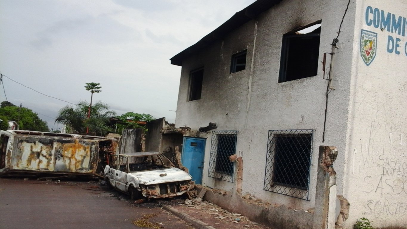 Ici, plusieurs cas de sabotage des biens immobiliers publics et privés sont signalés. Parmi les dégâts commis par les manifestants : l’incendie de deux postes de police, le pillage d’une boutique sur l’avenue du 5 février ainsi que de la maison du ministre du Commerce et des Approvisionnements, Euloge Landry Kolelas, dans le premier arrondissement de Brazzaville.