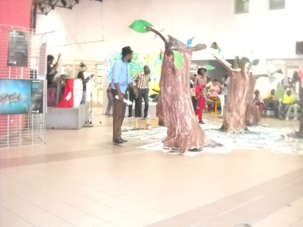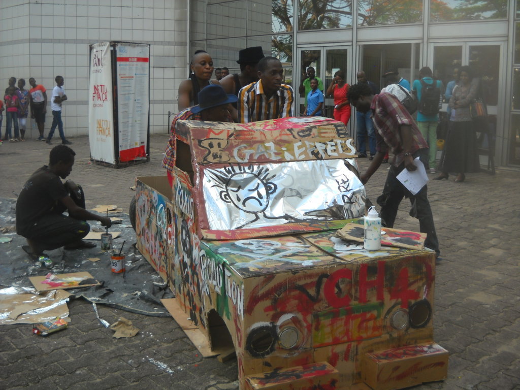Au cours de ces performances, les artistes ont démontré la fabrication d'un camion en carton, ce véhicule qui pollue la ville tout au long de la journée sur lequel on peut lire pollution, danger, toxic, gaz à effet de serre, CH4 etc. Ces derniers ont érigé une forêt artificielle dans le hall de l’Institut français du Congo et, ont réalisé une toile symbolisant la forêt et la lecture des poèmes.