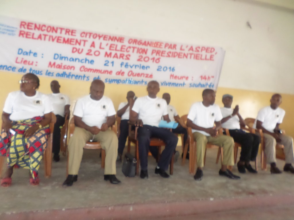 Elle invite, par ailleurs, les acteurs politiques au strict respect des lois et règlements de la République ainsi que des procédures électorales arrêtées, mais aussi et surtout à appliquer la devise du pays : Unité-Travail-Progrès. En publiant cette déclaration, l’Asped a un seul souci majeur : consolider la paix sociale retrouvée au prix des sacrifices et les progrès que le pays a réalisés aux plans économique, social et infrastructurel, pour le bien de la nation.