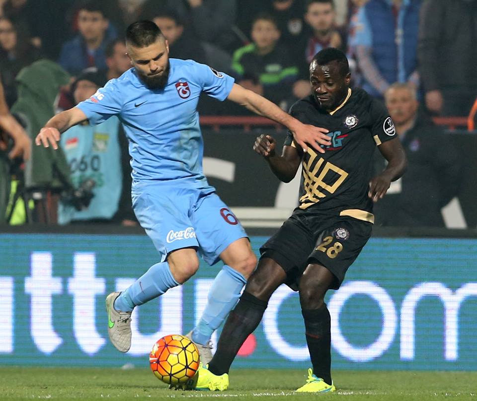 Dzon Delarge était titulaire sur le côté gauche lors du déplacement d’Osmanlispor à Trabzonzpor. C’est pourtant sur le côté droit qu’il s’illustre rapidement avec un superbe centre pour le Nigérian Umar, qui perd son duel. Toujours à droite, il délivre ensuite une délicieuse passe en profondeur de l’extérieur du pied pour Rusescu, lui aussi mis en échec par le gardien de Trabzon. La troisième tentative sera la bonne : sur la droite, toujours, il repique légèrement pour distiller, du coin de la surface, un centre au ras du sol, parfaitement dosé entre le gardien, pas terrible sur ce coup, et les défenseurs. Face au but vide, Rusescu ouvre le score (40e). Juste avant la pause, Rusescu sollicite le une-deux, mais l’international congolais est un peu long dans sa remise.