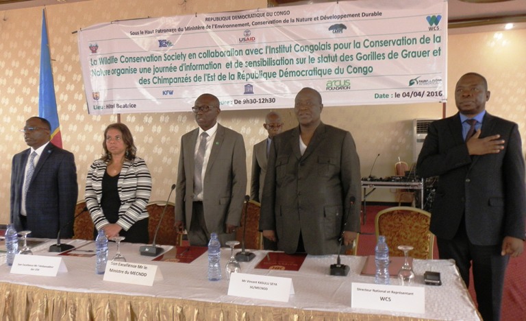 Une journée d’information et de sensibilisation sur le statut des gorilles de Grauer et des chimpanzés de l’est de la RDC a été tenue, le 4 avril 2016 à Béatrice Hôtel, à Gombe. Cette activité organisée par le ministère de l’Environnement, Conservation de la nature et Développement durable, en collaboration avec Wildlife Conservation Society (WCS) visait, selon le directeur national de la WCS-RDC, Richard Tshombe Key, à présenter les résultats des inventaires des grands singes et des gorilles de Grauer en particulier, à développer une feuille de route pour assurer la protection des gorilles de Grauer et à mettre en place une unité de suivi des mesures adoptées.