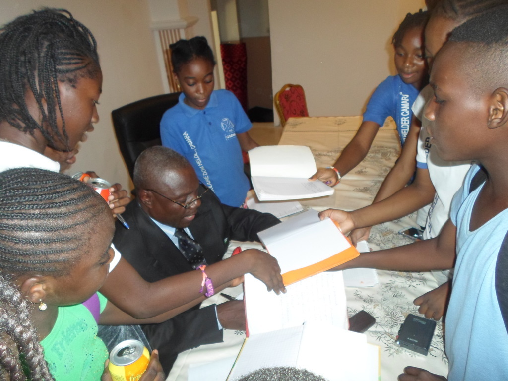 L’activité a connu la présence de Louis Banthoud, représentant du préfet de la ville et de plusieurs élèves qui ont envahi l’écrivain munis de leur cahier pendant la séance de dédicace et vente de ses œuvres. Des élèves n’ont pas caché leus émotions et leur joie de rencontrer et de toucher un écrivain pour la première fois. D’ailleurs, lors de la séance de questions-réponses, l’écrivain a invité les responsables d’écoles à organiser des rencontres entre les écrivains et les élèves «afin de casser la baie vitrée qui fait que les élèves regarde l’écrivain de loin ». Le même souhait a été émis par l’écrivain congolais Gabriel Okoundji qui a fait le tour des lycées de la ville lors de son séjour dans le pays il y a une semaine et qui voulait qu’il y ait plus de proximité, de contact entre l’élève et l’écrivain. Au cours de la cérémonie, François Luc Macosso à réitéré sa décision de mettre sa salle à la disposition de tous les amoureux de la culture, dans tous les genres de son expression. Il a précisé : «Cette offre est ma contribution personnelle à l’éclosion et au rayonnement de notre culture qui avait grandement besoin d’un mécénat fort et désintéressé.»