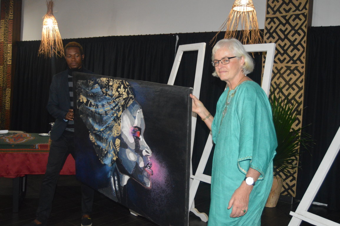 Après une exposition des œuvres d’art, rythmée par un orchestre de Jazz, dans la soirée du 12 juillet, les invités férus de tableaux et de toiles ont rivalisé d’ardeur pendant la vente aux enchères qui s’en est suivie. Chacun tenait, à la limite de ses moyens, à rentrer chez soi avec, ne fut-ce, qu’une œuvre d’art. pour en décrocher, les prix ont flambé jusqu’à atteindre un million, selon la valeur artistique de tel ou tel tableau. Près d’une dizaine d’œuvres ont été vendues. L’ambassadrice de l’Union européenne en République du Congo, Saskia De Lang, est celle qui en acheté le plus de tableaux. « (…) J’ai toujours été impressionnée par la qualité du travail des artistes congolais et ceux des pays limitrophes du Congo qui évoluent aux Ateliers Sahm depuis septembre 2014 quand je suis arrivée à Brazzaville », a-t-elle dit, heureuse de sortir de cette vente aux enchères avec autant d’œuvres d’art qui l’ont fortement impressionnée. Saskia De Lang a salué le travail que réalise Bill Kouélany, la présidente des Ateliers Sahm.