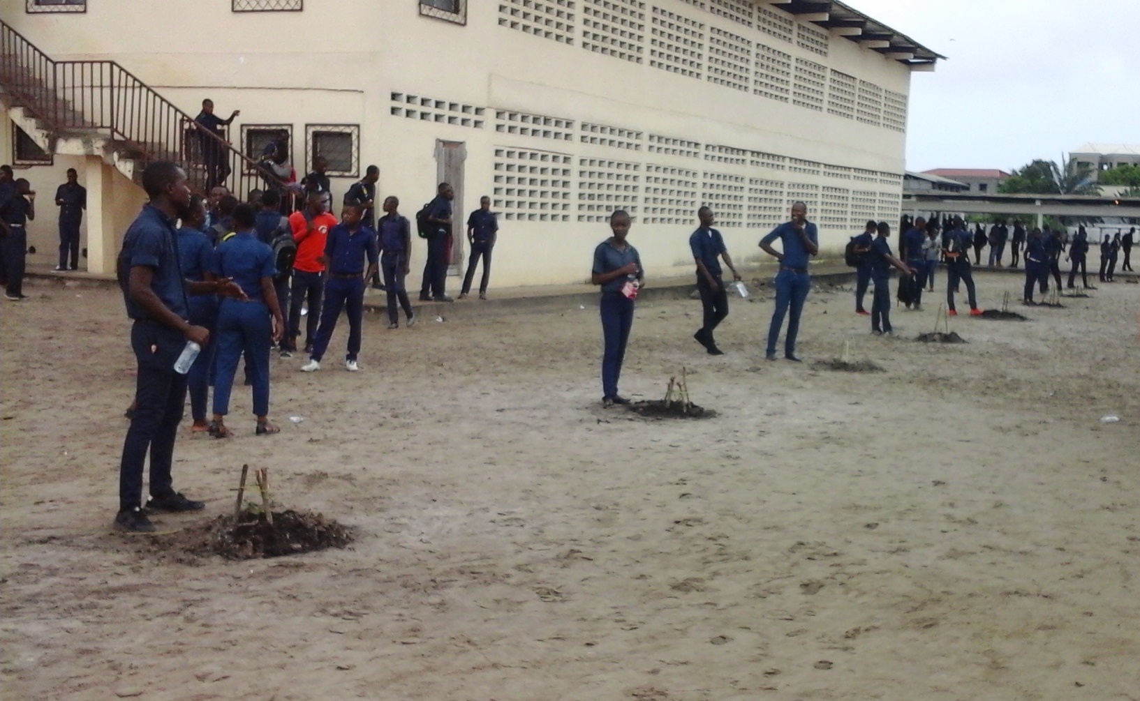 La réalisation de cette activité au sein du lycée Poaty-Bernard a été anticipée à cause de la journée du 6 novembre qui tombe un dimanche, jour de repos des élèves, ceux-ci étant concernés par le planting. Le lycée technique Poaty-Bernard étant presque dépourvu d’arbres à cause de son sol sablonneux, Femmes nouvelles et Congo vert ont trouvé comme alternative d’utiliser de la terre noire. Le planting a pu être réalisé avec la contribution de la mairie de Pointe-Noire qui a mis à leur disposition deux camions de terre noire et le Service national de reboisement (SNR) qui a fourni les plants d’acacia et de mentalis.