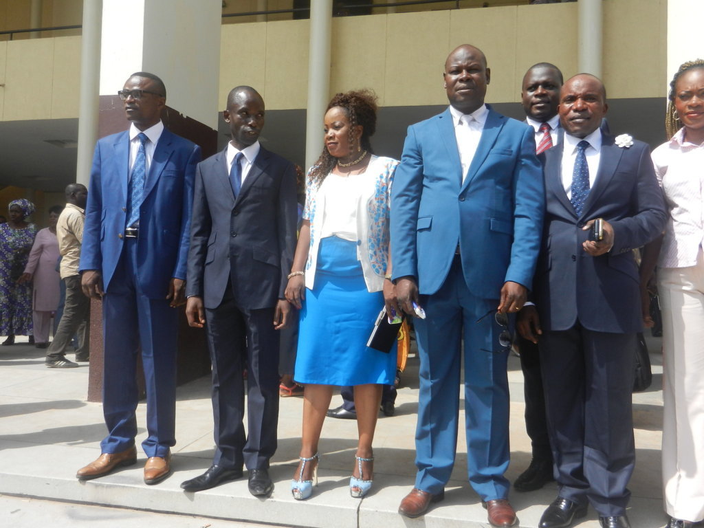 Devant le prétoire, les cinq géomètres ont levé à tour de rôle la main droite et juré d’exercer leur métier dans le respect des dispositions de la loi ; en présence de leurs familles et collègues de service.