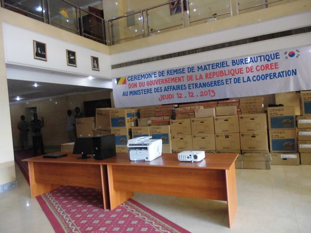 Ces équipements informatiques ont été réceptionnés des mains de l’ambassadeur de Corée au Congo, Lee Hosung, par le secrétaire général du ministère des Affaires étrangères et de la Coopération, Sylvestre Mamina. Flambant neuf, ce matériel est composé de 25 ordinateurs de bureaux ; 40 ordinateurs portables ; 20 copieurs multifonctions Ricoh couleur ; 1 copieur Ricoh couleur et 5 copieurs Ricoh monochrome. Il faut ajouter à cette liste : 2 vidéos projecteurs ; 2 écrans de projection sur trépied et 2 toners Ricoh noir/blanc et couleur.